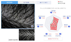 髪&地肌の状態をチェックでき、今の髪や地肌のお悩みの原因を見つけることができます。